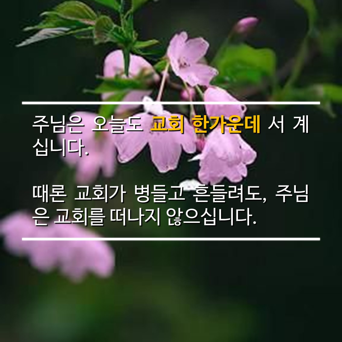 때론 교회가 병들고 흔들려도, 주님은 교회를 떠나지 않으십니다.