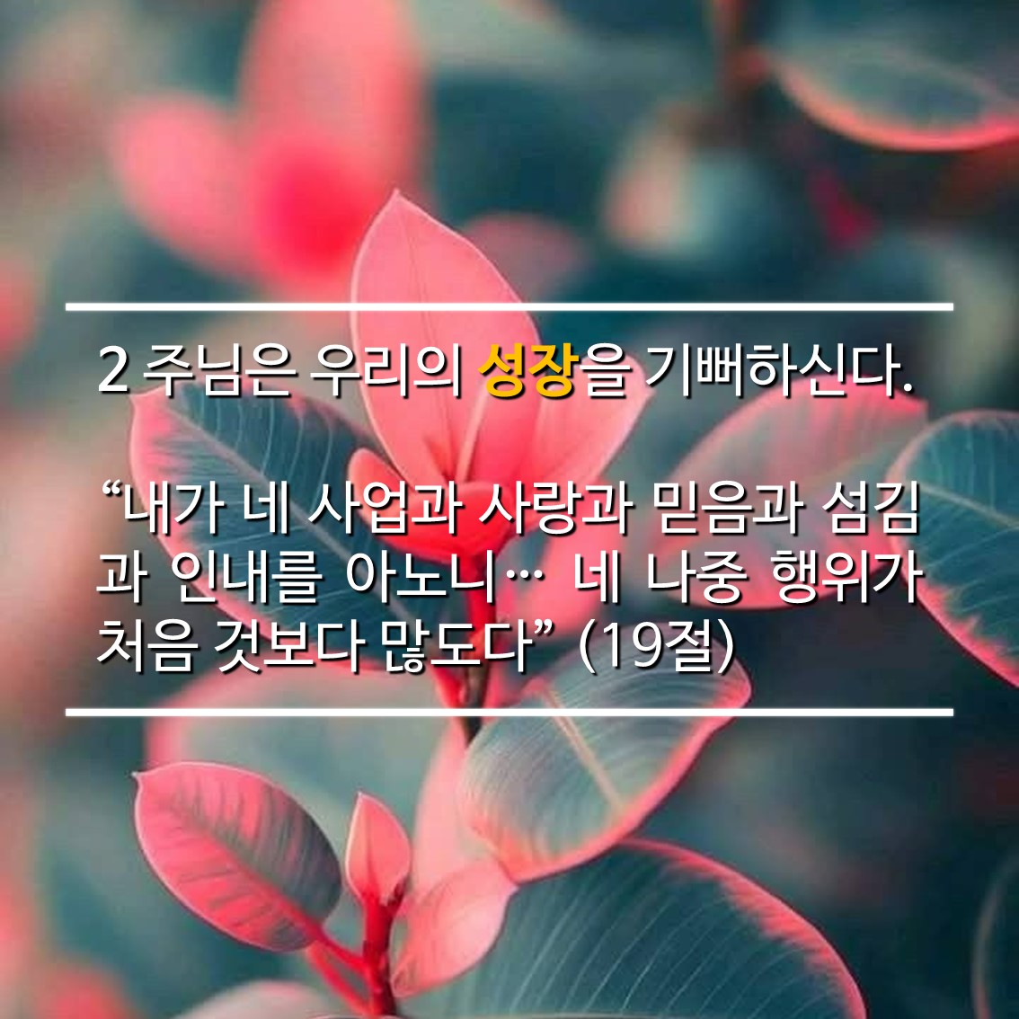 “내가 네 사업과 사랑과 믿음과 섬김과 인내를 아노니… 네 나중 행위가 처음 것보다 많도다” (19절)