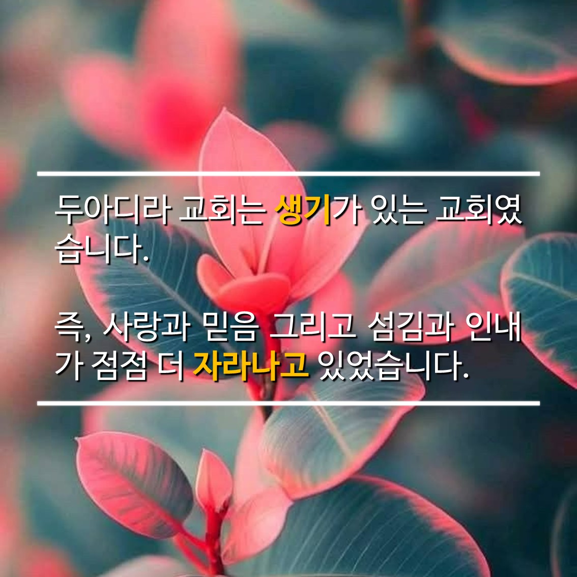 즉, 사랑과 믿음 그리고 섬김과 인내가 점점 더 자라나고 있었습니다.