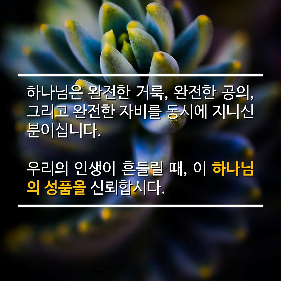 하나님은 완전한 거룩, 완전한 공의, 그리고 완전한 자비를 동시에 지니신 분이십니다.