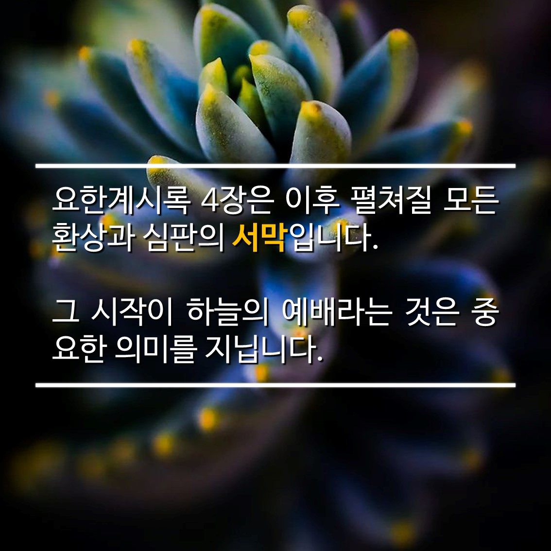 요한계시록 4장은 이후 펼쳐질 모든 환상과 심판의 서막입니다.