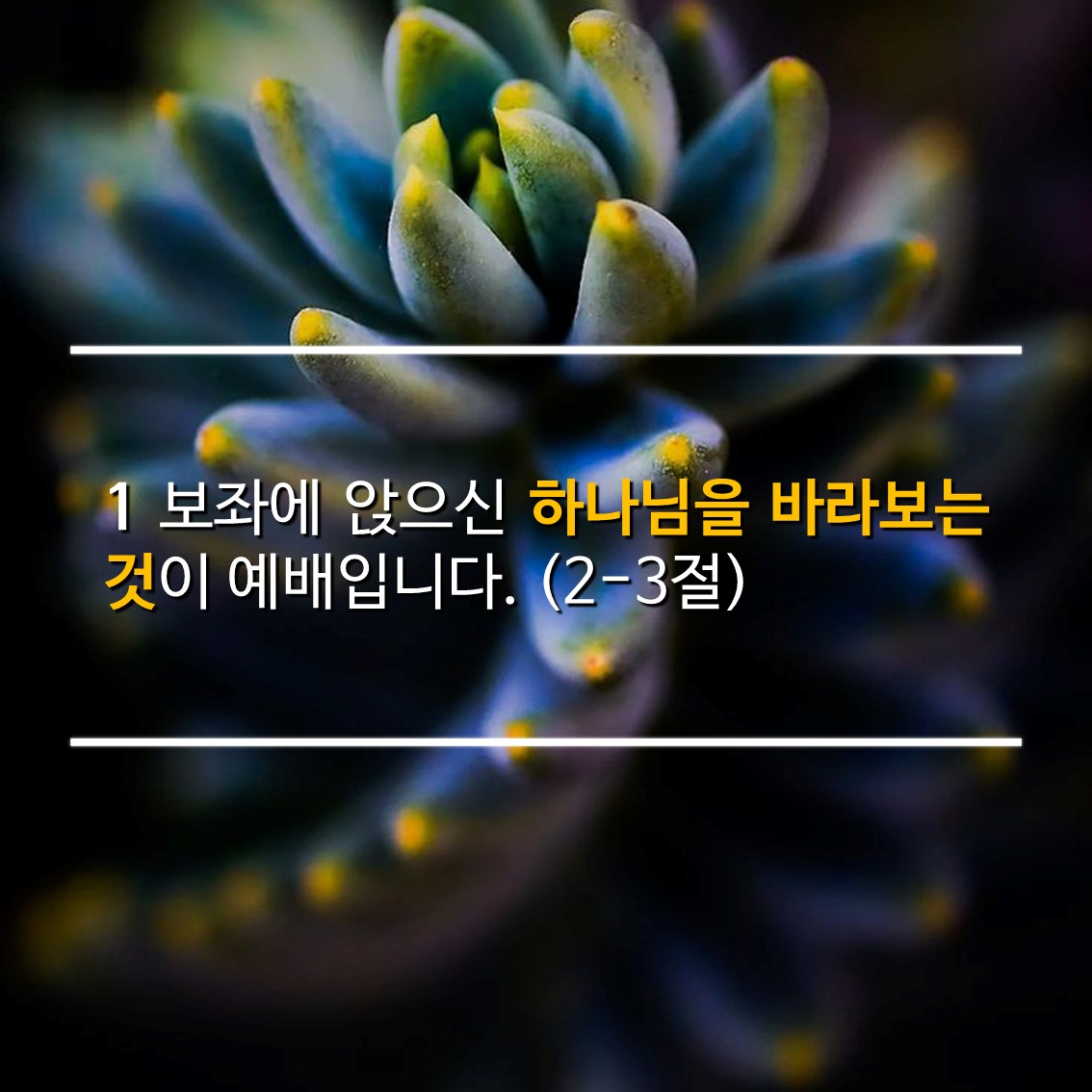 1 보좌에 앉으신 하나님을 바라보는 것이 예배입니다. (2-3절)