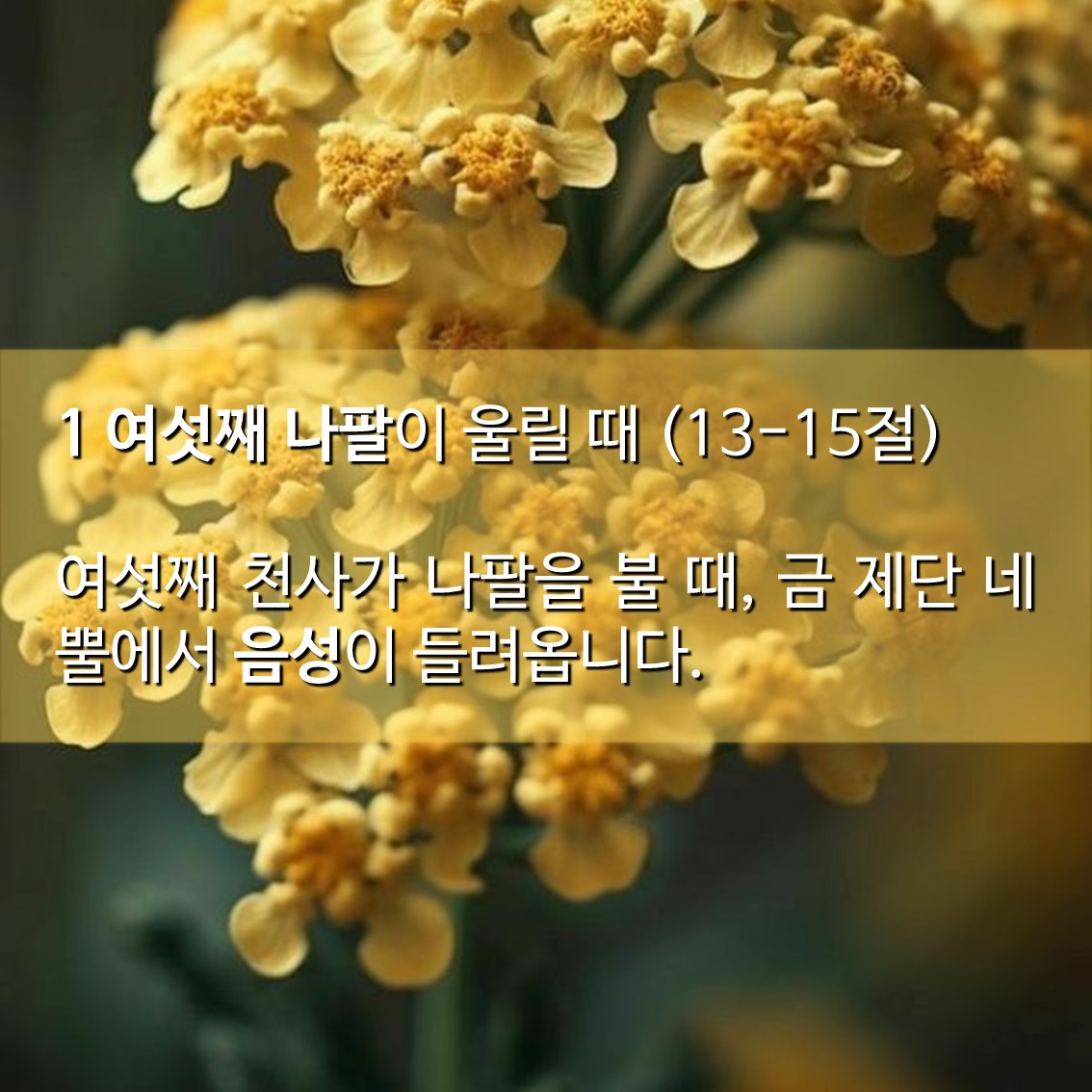 여섯째 천사가 나팔을 불 때, 금 제단 네 뿔에서 음성이 들려옵니다.
