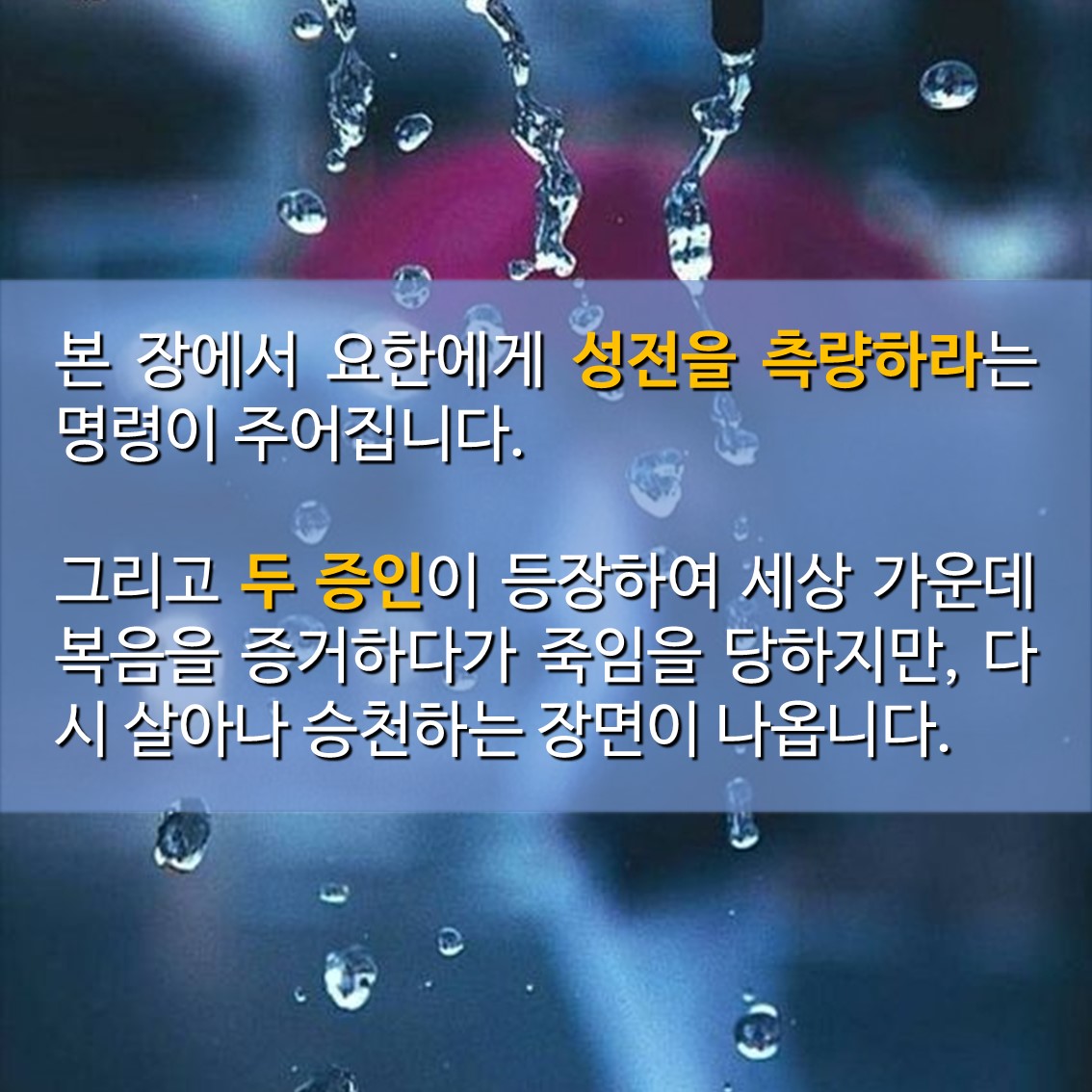 본 장에서 요한에게 성전을 측량하라는 명령이 주어집니다.