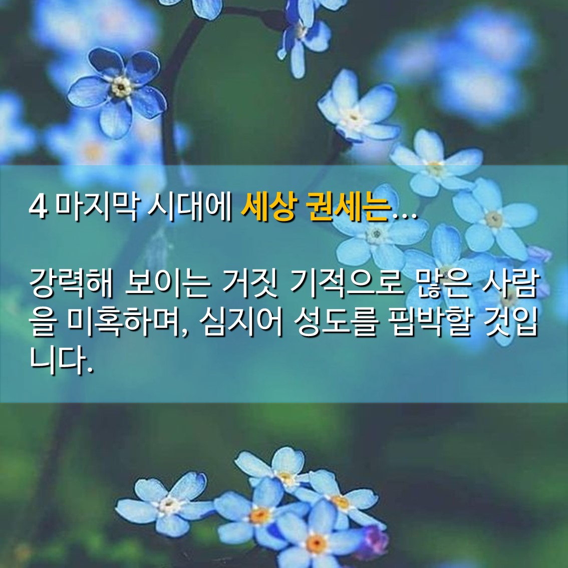 마지막 시대에는 거짓된 능력과 화려한 말로 미혹하는 세력이 등장합니다.
