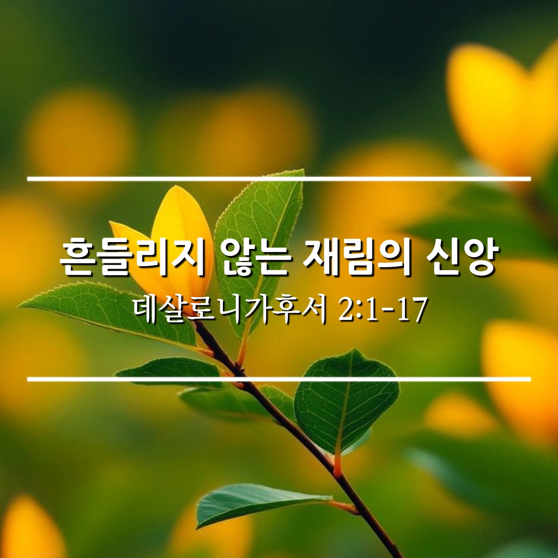 제목흔들리지 않는 재림의 신앙 / 데살로니가후서 2:1-17 [대련안디옥한인교회]2025-09-07 17:04