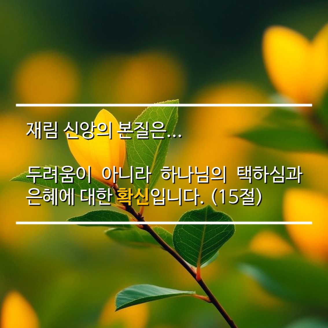 두려움이 아니라 하나님의 택하심과 은혜에 대한 확신입니다. (15절)