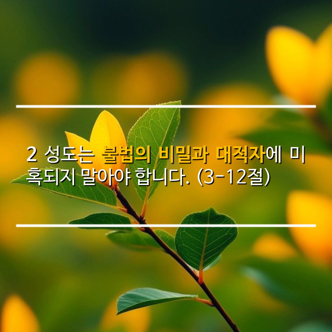 2 성도는 불법의 비밀과 대적자에 미혹되지 말아야 합니다. (3-12절)