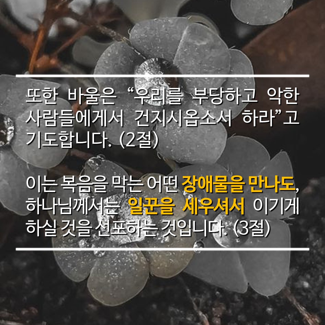 또한 바울은 “우리를 부당하고 악한 사람들에게서 건지시옵소서 하라”고 기도합니다. (2절)