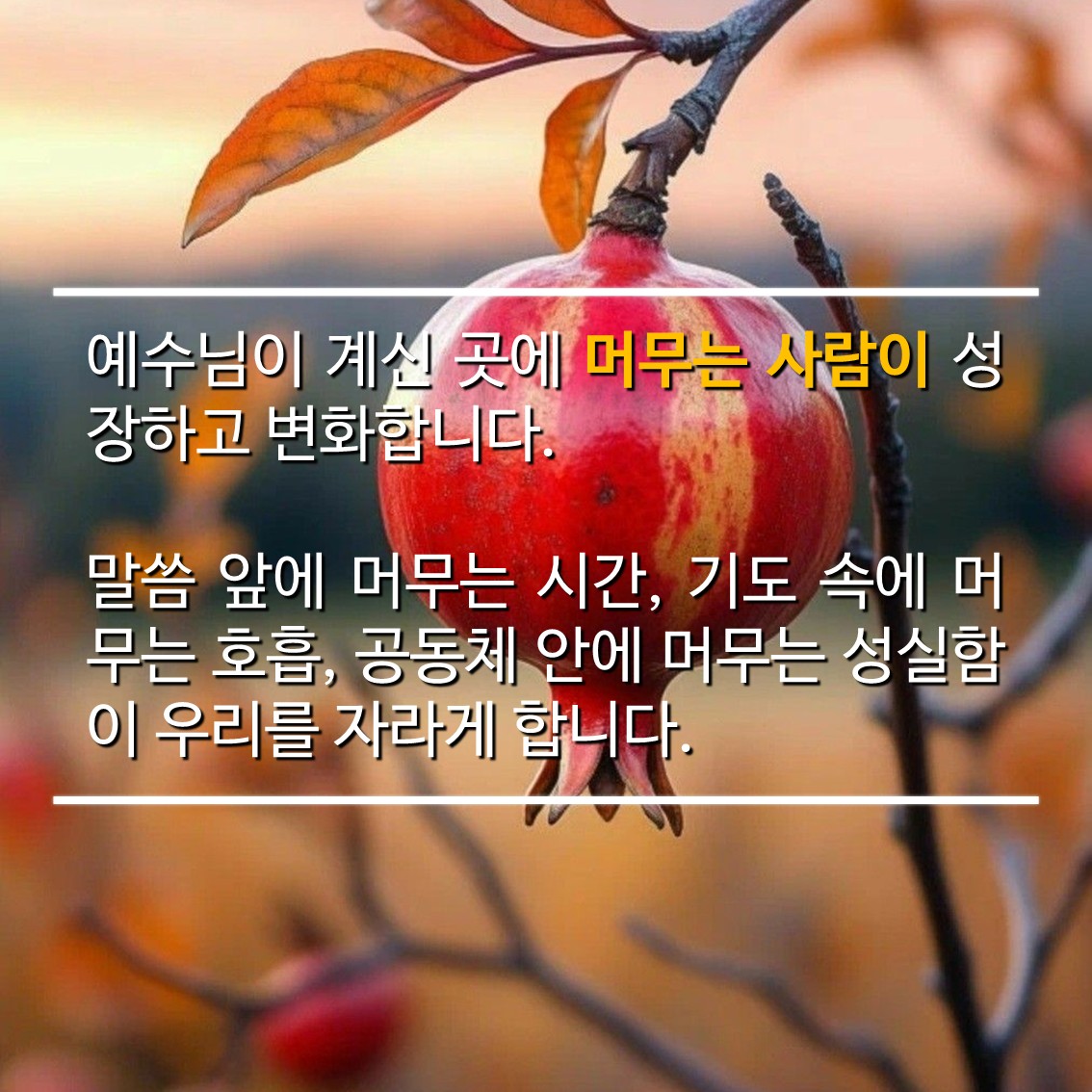 말씀 앞에 머무는 시간, 기도 속에 머무는 호흡, 공동체 안에 머무는 성실함이 우리를 자라게 합니다.